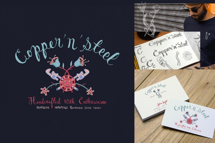 Plombier chauffagiste indépendant sous le nom de Copper’N’Steel, mais surtout surfeur, voyageur et photographe (entre autres). Julien Meynet a choisi une identité visuelle qui ressemble d’avantage à sa personnalité qu’à son activité professionnelle.